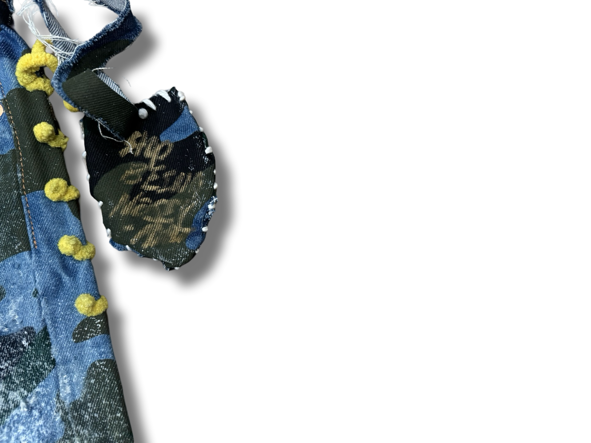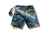 Distressed vintage camo printed denim stash pocket shorts