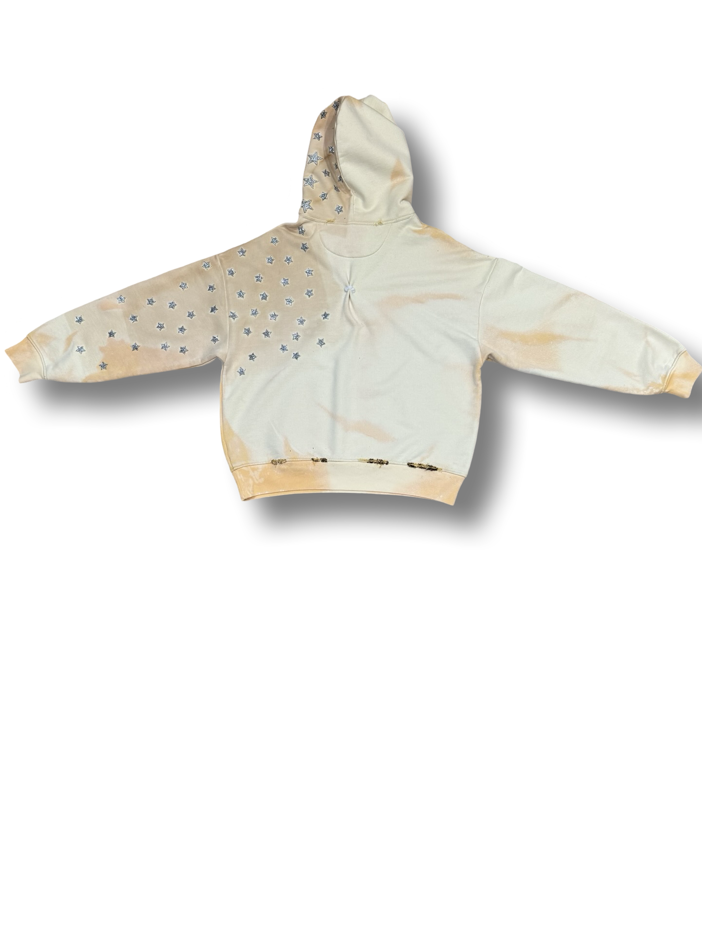 "YELLOW TAN" dirty star studded "ARTS AND CRAFTS" heavyweight pullover hoodie.